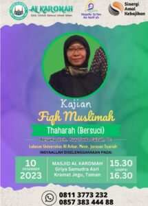 Pada tanggal 10 Desember 2023, Yayasan Sinergi Amal Kebajikan telah mengadakan kegiatan Kajian Fiqh Muslimah. Kajian Ini diisi oleh Ustadzah Nur Yorda Faizah, Lc yang merupakan salah satu Lulusan Universitas Al-Azhar Mesir dengan berlokasi di Masjid Al Karomah Griya Samudra Asri Kramat Jegu, Taman.